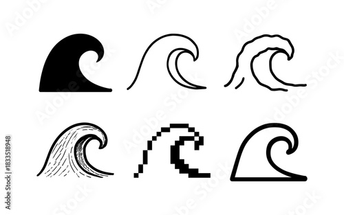 Fototapeta premium Stylized wave icons set featuring diverse artistic styles