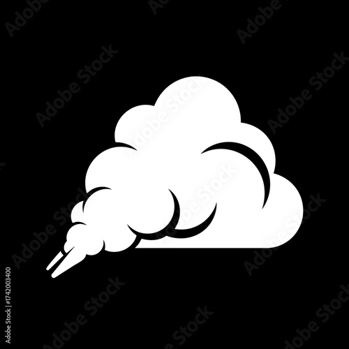 © Khaula_Annasya, Naklejka premium Stylized white smoke cloud or steam puff vector illustration on black background.