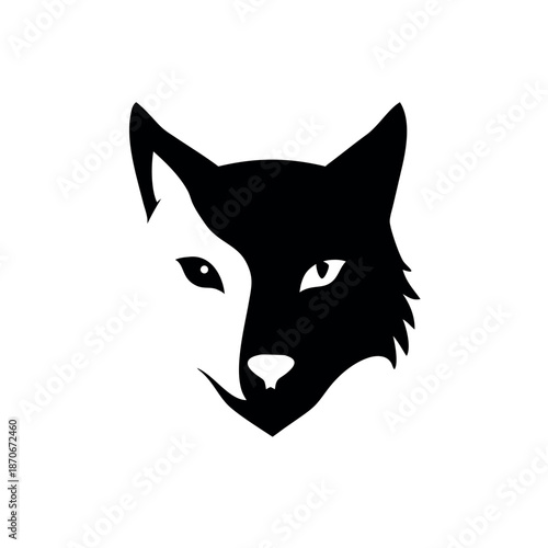 © khan, Obraz premium Stylized Wolf Face and Cat Face Fusion for Creative Wildlife Art On white Background Vector illustration