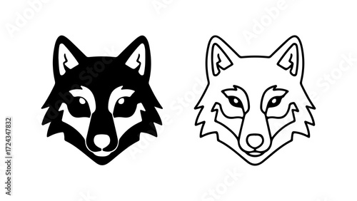 © Adobe, Fototapeta premium Stylized wolf head vector icons in silhouette and outline.