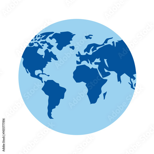Fototapeta premium Stylized world globe with blue continents and light-blue oceans