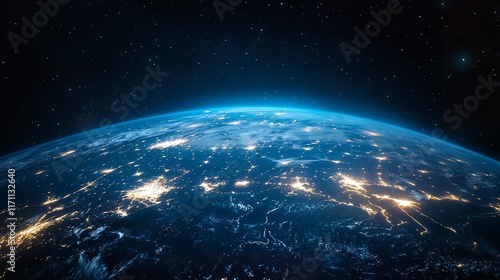 Fototapeta premium Stylized world map shows global communication network, with cities connected...