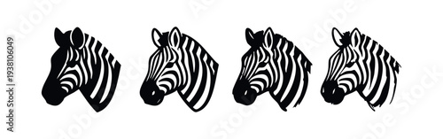 © liubomir118809, Fototapeta premium Stylized Zebra Head Profile Vector Icons Set on White Background