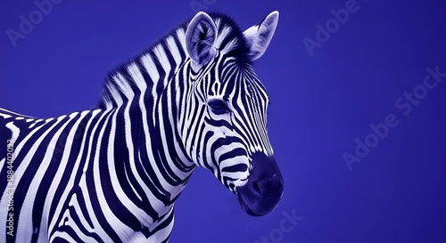 © Subrata, Fototapeta premium Stylized Zebra Portrait Against Vibrant Blue Background wildlife animal