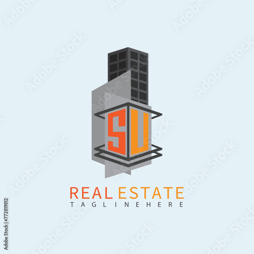 © MdRazibul, Fototapeta premium SU Real Estate Letter Monogram Vector Logo. Home Or Building Shape All Logo.