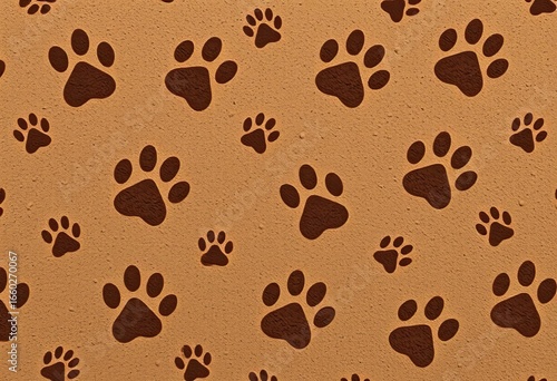 Obraz premium Subdued brown muddy paw prints seamlessly repeating across a textured...