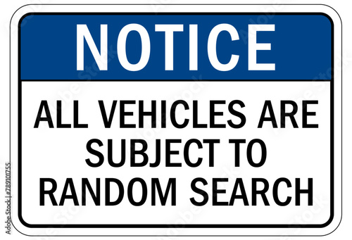Fototapeta premium Subject to search sign all vehicles are subject to random search