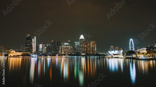 © Chilapse, Fototapeta premium Sublime réflexion des lumières de la ville de Singapour