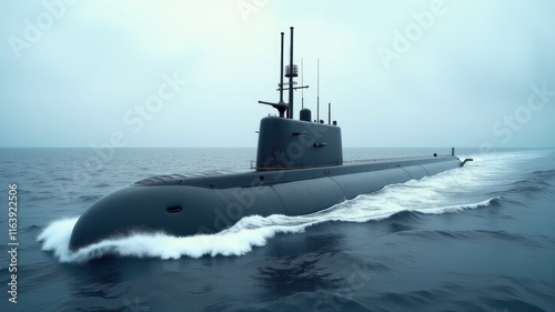 Fototapeta premium Submarine Floating on the Ocean Surface: A Maritime Scene