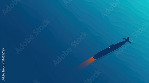 Fototapeta premium Submarine Launching Missile, Submarine underwater launching a missile