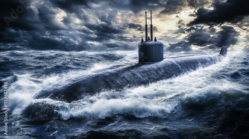 Fototapeta premium Submarine Navigating Through Dramatic Sea Waves