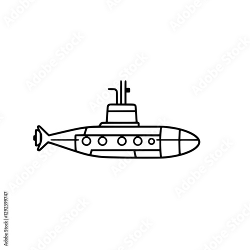 © MatandSterre, Obraz premium Submarine outline in a minimal and minimalistic style against a white background.