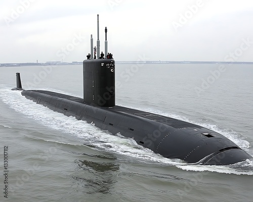 Fototapeta premium Submarine sails on water surface, ocean landscape
