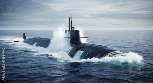 © robbi, Fototapeta premium Submarine Surfacing: Power and Precision at Sea