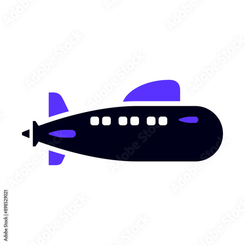 Fototapeta premium Submarine transport flat icon, side view