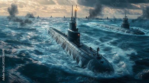 Fototapeta premium Submarines in a Stormy Ocean: Naval Power