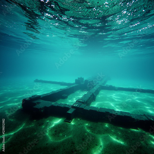 © Genesis AI, Obraz premium Submerged Ancient Structure in Crystal Clear Waters