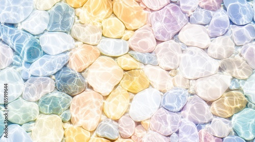 Fototapeta premium Submerged stones with colorful ripple effect: A mesmerizing display of colorful stones seen through shimmering water.