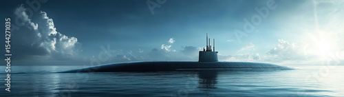 Fototapeta premium Submerged submarine in tranquil seascape.