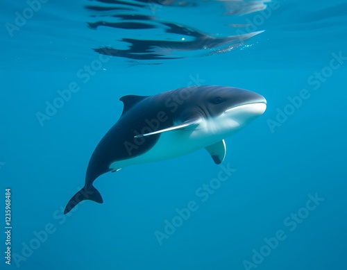© Aldiwftr, Fototapeta premium Submerged World: A Juvenile Commerson's Dolphin in its Oceanic Habitat