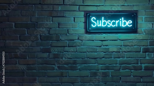 Fototapeta premium Subscribe neon sign on brick wall made with Ai generative technology