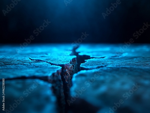 Fototapeta premium Subterranean fracture glowing with an eerie cyan light in the deep