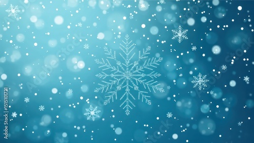 © somruthai, Fototapeta premium Subtle blue background with delicate snowflake shapes and light, white blurred circles creating a calming winter festive design