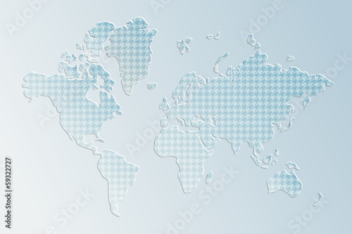 © natalyon, Obraz premium Subtle 3d textured paper world map illustration in blue, vector