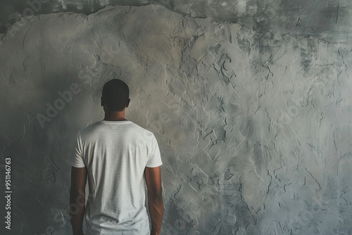 Obraz premium Subtle Depth: Man Against Gray Wall