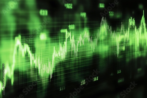 © Akash, Fototapeta premium Subtle digital waveforms in green on a dark canvas symbolizing finance