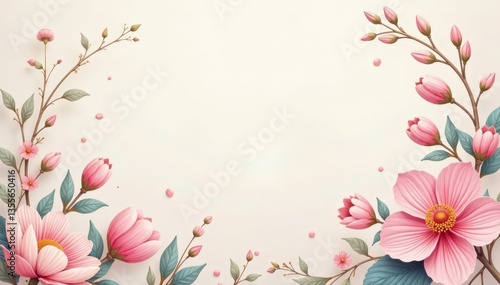 Fototapeta premium Subtle floral motif, pastel hues, delicate lines, repeat, design, soft