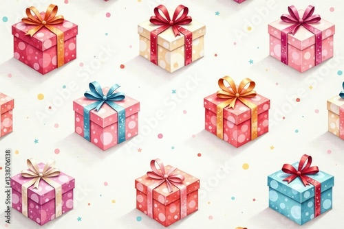 Fototapeta premium Subtle gift box pattern, watercolor style, pastel tones, illustration, delicate, background