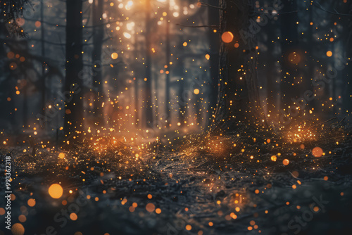 © PHAISITSAWAN, Naklejka premium Subtle glowing particles scattered for a magical touch.