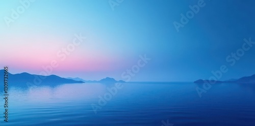 Fototapeta premium Subtle gradient of blue hues meets a crisp, clean horizon line , calm, water