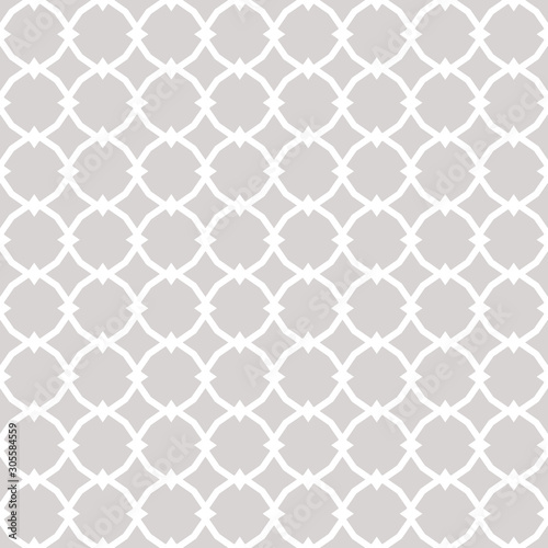 © Olgastocker, Fototapeta premium Subtle ornamental vector seamless pattern with geometric tiles, star shapes, grid. Elegant white and gray ornament. Simple abstract background texture. Repeat design for decor, prints, covers, carpet