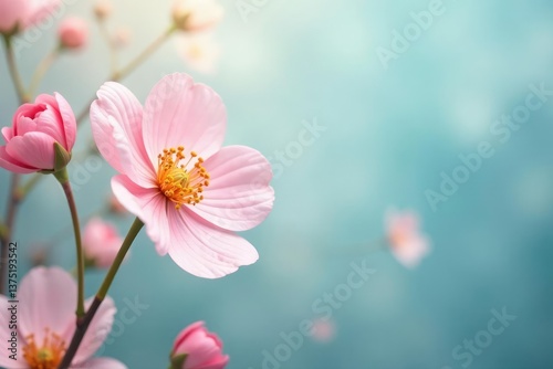 Fototapeta premium Subtle pastel floral motif, soft focus for calming backgrounds, wallpaper,...