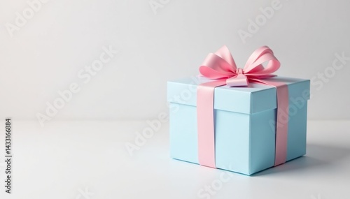 Obraz premium Subtle pastel gift boxes, light blue and pink, white background, paper,...