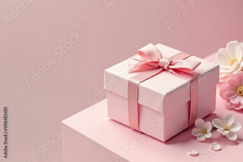 Fototapeta premium Subtle pastel gift boxes, small floral accents, soft color palette,...