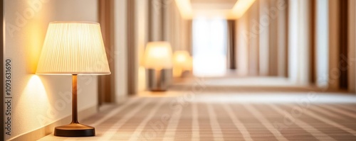 © Nongluk Tama, Obraz premium Subtle path lighting in a hotel corridor, providing soft guidance