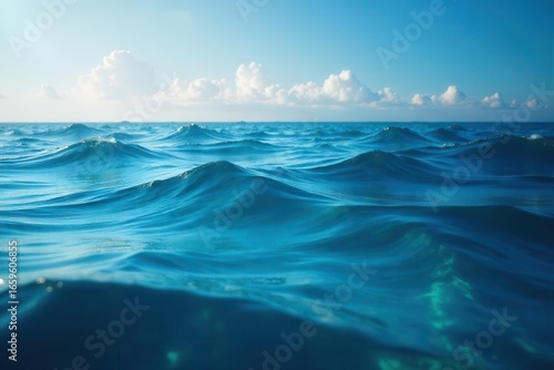 Fototapeta premium Subtle shift from dark navy to bright cyan, smooth ocean surface , deep, texture