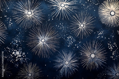 Naklejka premium Subtle starburst patterns in silver on a navy-blue canvas