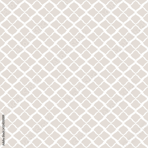 © Olgastocker, Fototapeta premium Subtle vector geometric seamless pattern. Simple white and light beige texture. Background with mesh, lattice, net, grid, small rhombuses, diamonds. Delicate abstract ornament. Elegant repeat design