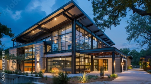 Obraz premium Suburban house of industrial design, characterized by materials such as...
