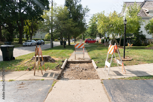 © Christian, Fototapeta premium Suburban Neighborhood Sidewalk under Construction Barriers