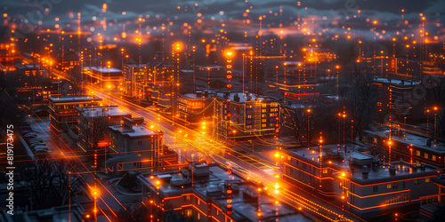Fototapeta premium Suburban Nightlife Illuminated by IoT and DX: Smart Home Connectivity in Digital Community