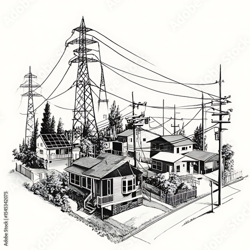 © anggita, Fototapeta premium Suburban Power Grid Sketch.