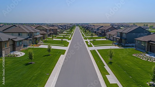 Obraz premium Suburban Street Lined With New Homes And Lush Lawns