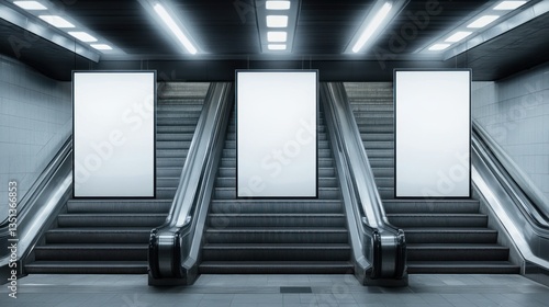 © Aziz, Obraz premium Subway Escalator with Blank Posters