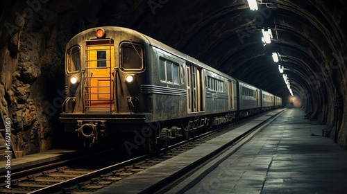 Naklejka premium subway train in a tunnel section cut