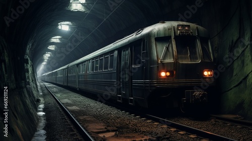 Naklejka premium subway train in a tunnel section cut